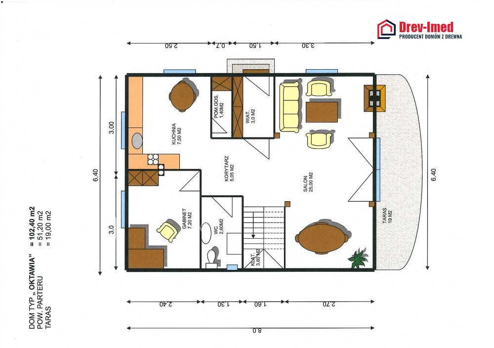 Dom mieszkalny jest wykonany z drewna świerkowego lub na zamówienie z drewna modrzewiowego. Jest bardzo dobrze ocieplony wełną Gullfiber. Od wewnątrz może być wykończony suchymi tynkami lub drewnem. Od zewnątrz posiada elewacje drewnianą lub termomur różnej grubości plus dodatkowe ocieplenie uzyskując statut domu Pasywnego.