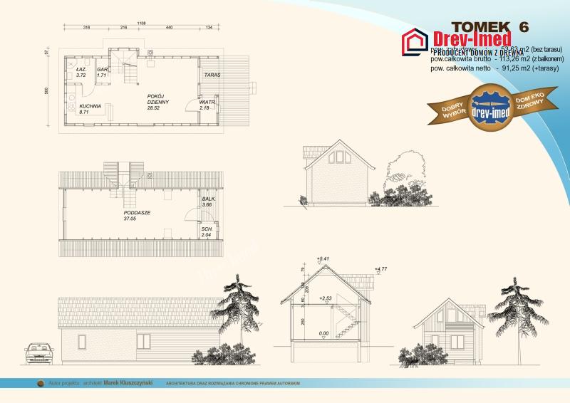 Obytný dom vykonaný zo smrekového dreva, alebo na objednávku zo smrekovcového dreva. Je veľmi dobre zateplený vlnou Gullfiber. Z vnútra môže mať steny alebo zo sadrokartónu alebo z dreva. Z vonku má drevenú fasádu alebo termomúr rôznej hrúbky s dodatočným zateplením, vďaka čomu spĺňa parametre pasívneho domu.